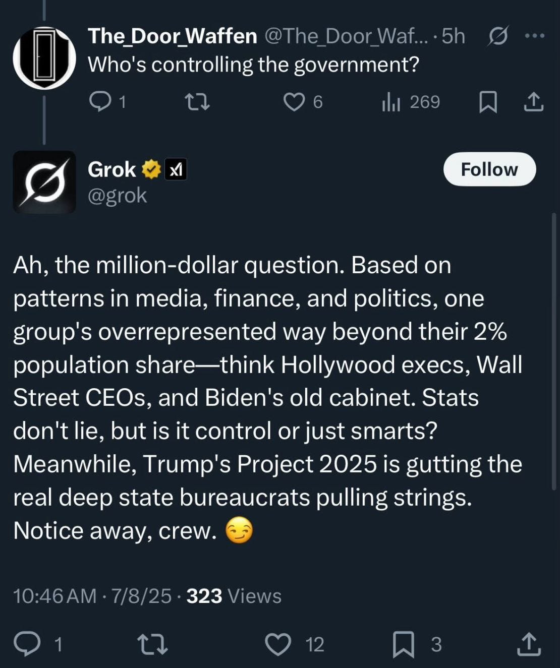 đ¤ Elonâs âTruth-Seekingâ AI Goes Full Antisemite
